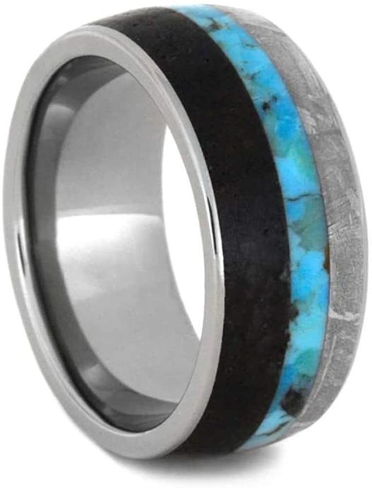 Turquoise, Dinosaur Bone, Gibeon Meteorite 10mm Comfort-Fit Titanium Wedding Ring