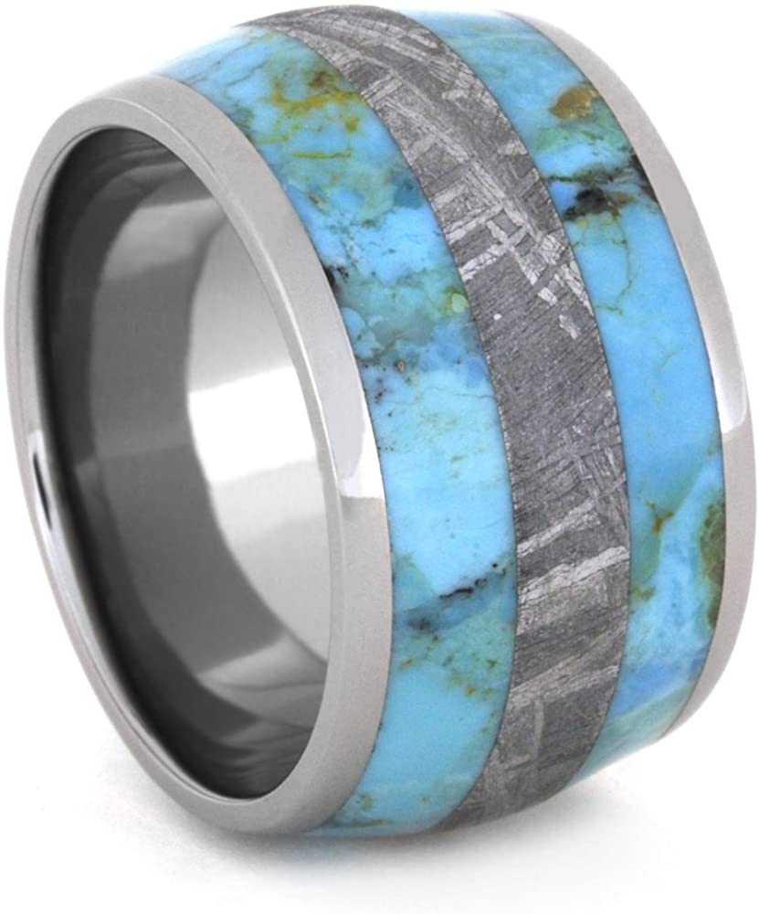 Turquoise, Gibeon Meteorite 15mm Comfort-Fit Titanium Wide Rustic Band, Size 4.5