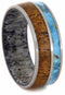 - HAND-CRAFTED Couples Rings: Men's and Women's Band is 7.00 Millimeters Wide; Men's Sleeves is Crafted by Mesquito Wood Encircled by Turquoise and Deer Antler Overlay; Women's Sleeves is Made of Deer Antler Encircled by Turquoise and Mesquite Wood Inlay; Both are Hypoallergenic; Titanium Brushed Finish, Domed Profile Ring