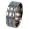 - This Custom Ring Features Two Crushed Blue Turquoise Customer Supplied Pinstripe Inlay a Hypoallergenic; Comfort-Fit, Titanium Brushed Finished