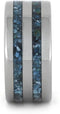 - Genuine Crushed Turquoise Creates Two Continuous Inlays Framed by Mirror Polished Titanium Stripes; Ring is Crafted in Polished Titanium