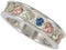 Beautiful Black Hills Gold sterling silver mother's ring accented with 12k Black Hills Gold designs of pink and green leaves and a White Zircon gemstone. A gem of beauty, sparkling White Zircon, a natural gemstone, may be mistaken for the more expensive diamond. Frequently used to celebrate December birthdays and the 4th wedding anniversary, as well as being a good gemstone for Virgos. Due to the natural state of the stones, each may differ slightly in color and inclusions. This ring contains no nickel; it’s gentle on sensitive skin.