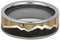 • MEASUREMENTS Left to Right: Women's: .50 Millimeters Titanium, 2.50 Millimeters Natural Redwood, 1.00 Millimeter Sterling Silver, 2.50 Millimeters Crushed Lapis Lazuli, .50 Millimeters Titanium; Men's: 1.00 Millimeter Titanium, 2.50 Millimeters Oak Wood, 1.00 Millimeter Sterling Silver, 2.50 Millimeters Crushed Dinosaur Bone, 1.00 Millimeter Titanium