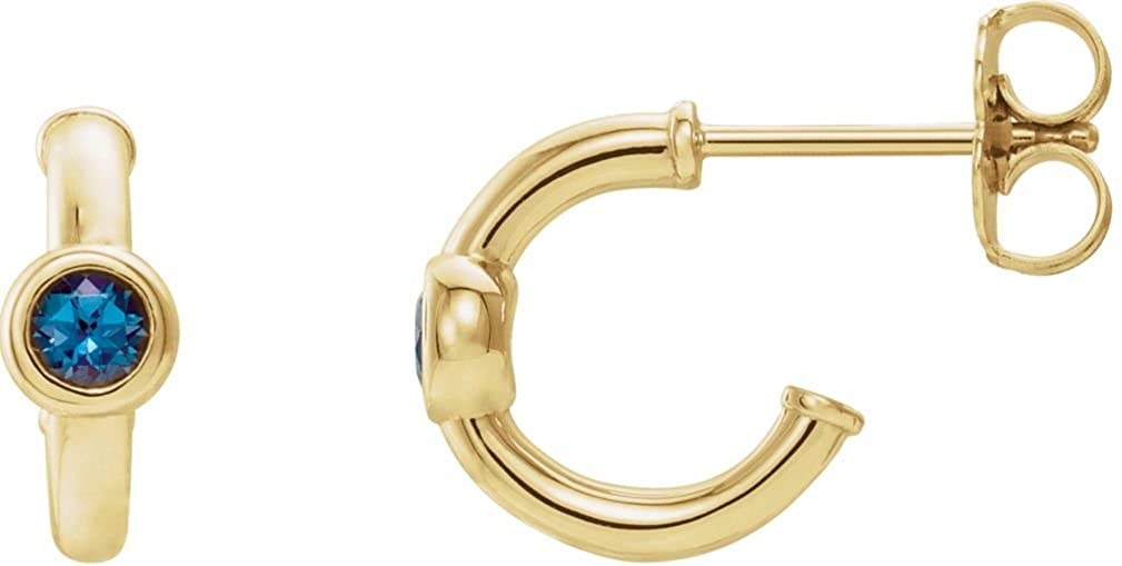 - Round Genuine Alexandrite Secured by Bezel Setting on Center of J Profile with Friction Back; Earrings are Crafted in Polished 14k Yellow Gold