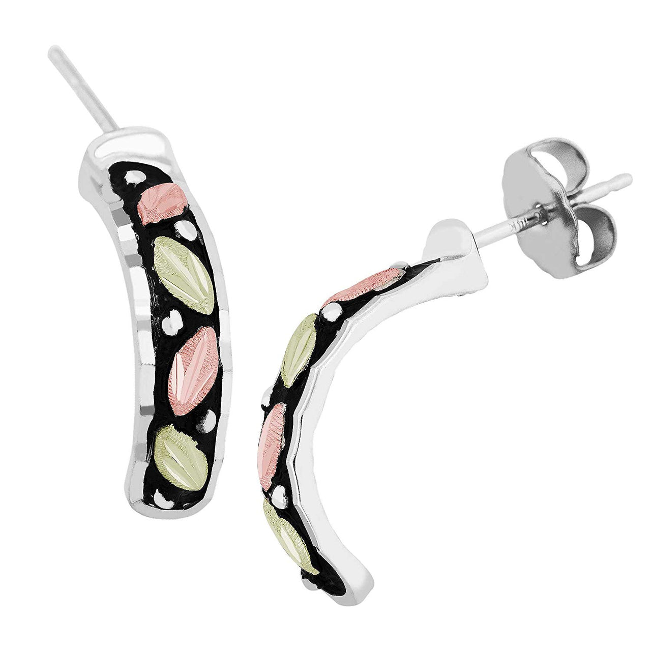 Antiqued Semi Hoop Earrings, Sterling Silver, 12k Green and Rose Gold Black Hills Gold Motif