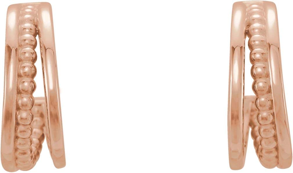 - A Triple Hoop Earrings Features One Center Hoop is Beaded with Two are High-Polished; Crafted in 14k Rose Gold