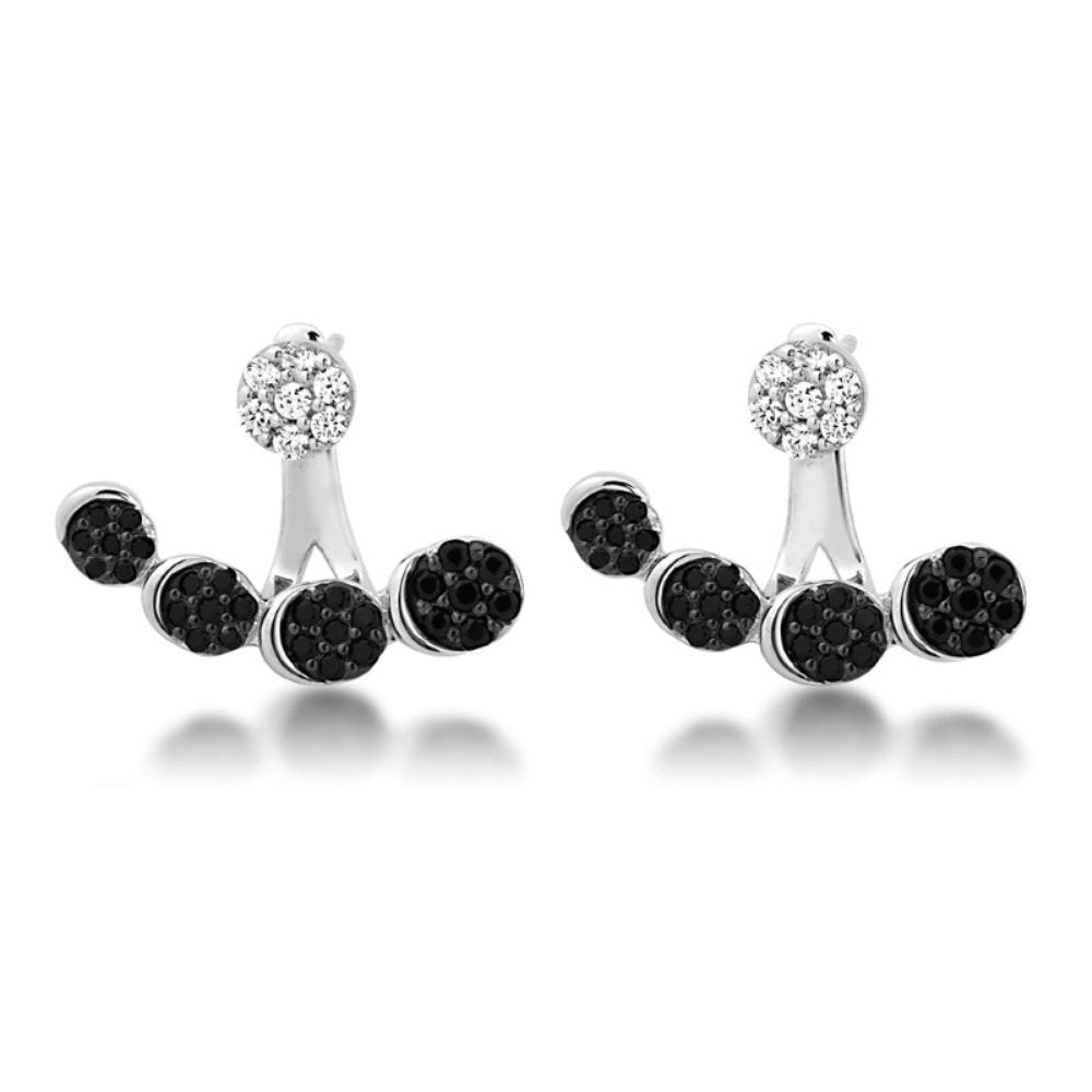 Black and White CZ Ear Climber Rhodium Plated Sterling Silver Stud Earrings