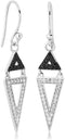 - Open-Cut Triangle Drop Earrings Accent with Top of Black and White Cubic Zirconia with French Wire; Crafted in Polished Rhodium Finish Sterling Silver