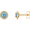 - Halo-Style Earrings Adorned with Inlaid Round Blue Zircon Encircled with Hand-Set Diamonds Secure by Friction Back; Crafted in Polished 14k Yellow Gold