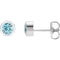 - Round Faceted Blue Zircon Earrings with Notched, Click In Post; Bezel-Set Earrings are Crafted in Polished Rhodium-Plated 14k White Gold