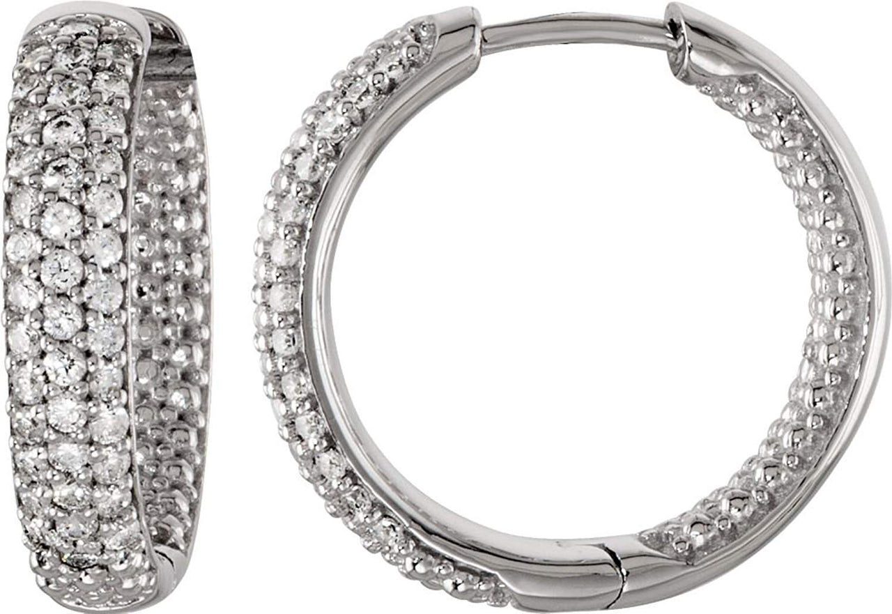 CZ Inside-Outside Hoop Earrings, Sterling Silver (19mm)