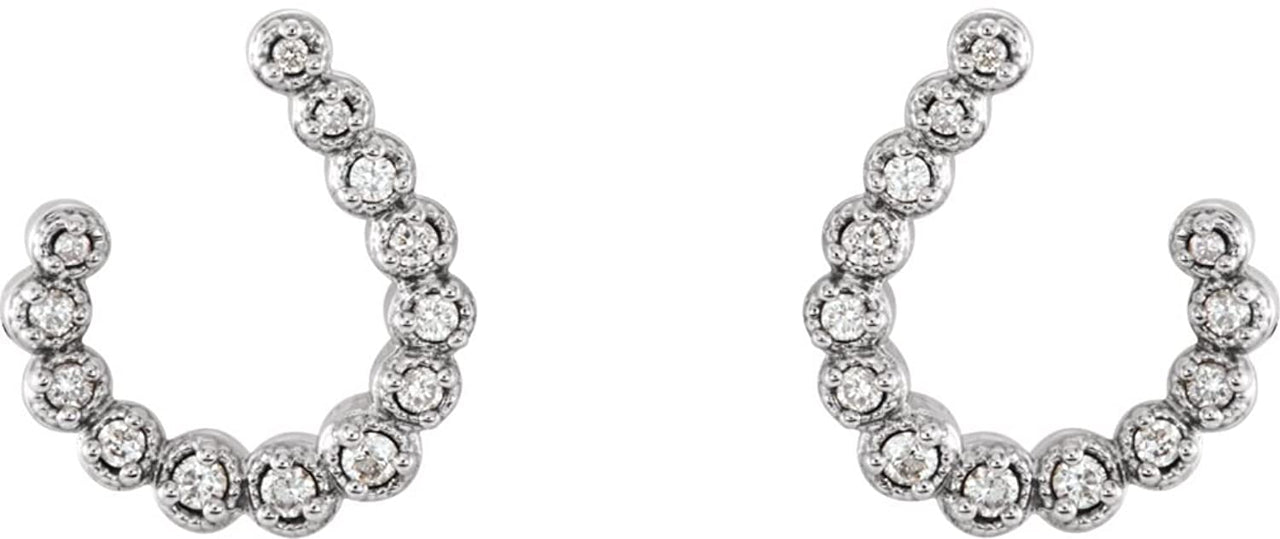 - 26 Hand-Set Diamonds on Highly-Polished Crescent J-Hoop Earrings with Granulated Bead Edging; Crafted in Rhodium-Plated 14k White Gold
