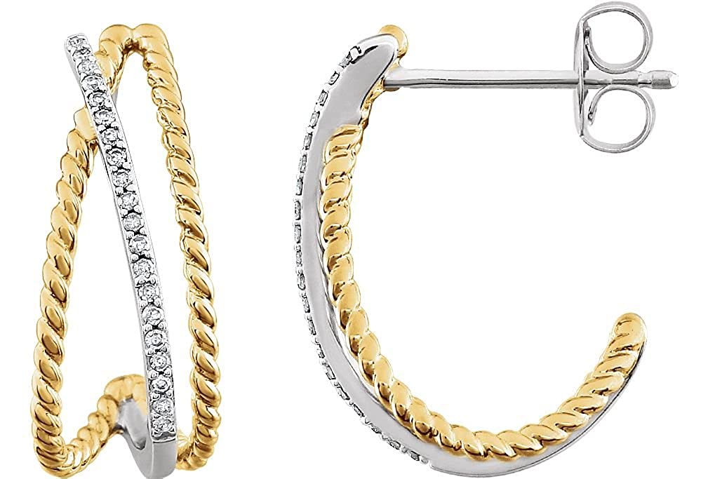 Diamond Criss Cross Rope J-Hoop Earrings, Rhodium-Plated 14k Yellow Gold Plated 14k White Gold (1/10 Ctw, Color HIJ, Clarity I3)