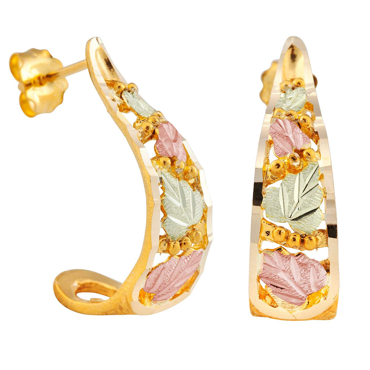 Ave 369 Diamond-Cut Semi Hoop Earrings, 10k Yellow Gold, 12k Green and Rose Gold Black Hills Gold Motif