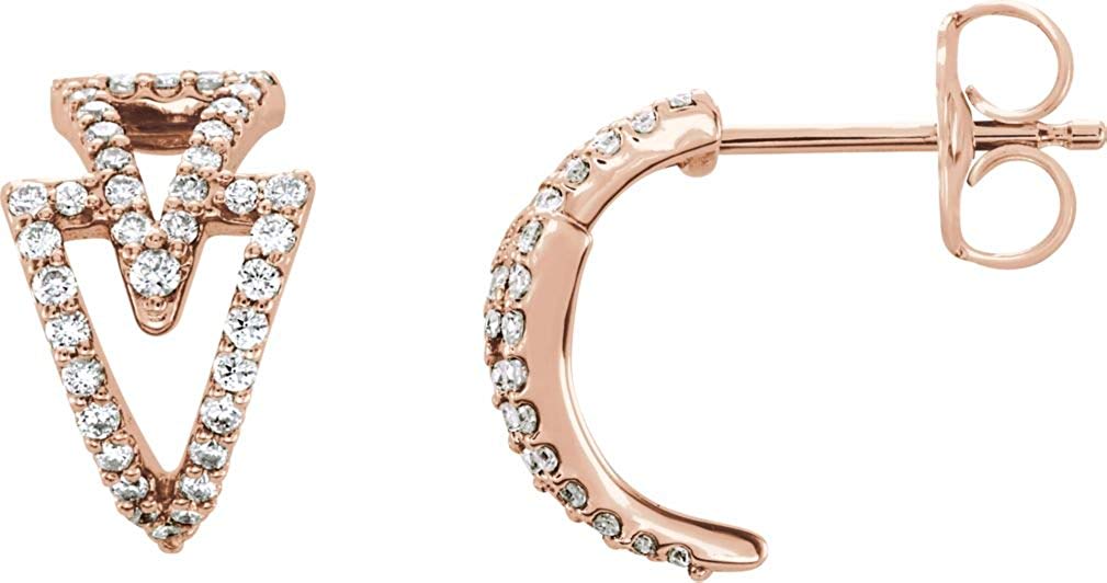- Hand-Set Diamonds on J-Hoop Profile Geometric Triangle; Earrings are Crafted in Polished 14k Rose Gold