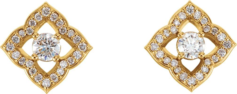 Diamond Halo-Style Clover Earrings, 14k Yellow Gold (.75 Ctw, GH Color, I1 Clarity)