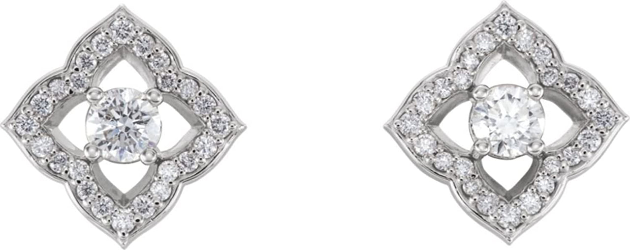 - 50 Hand-Set Diamonds on Halo-Style Clover Earrings with Friction Back; Crafted in Polished Rhodium-Plated 14k White Gold