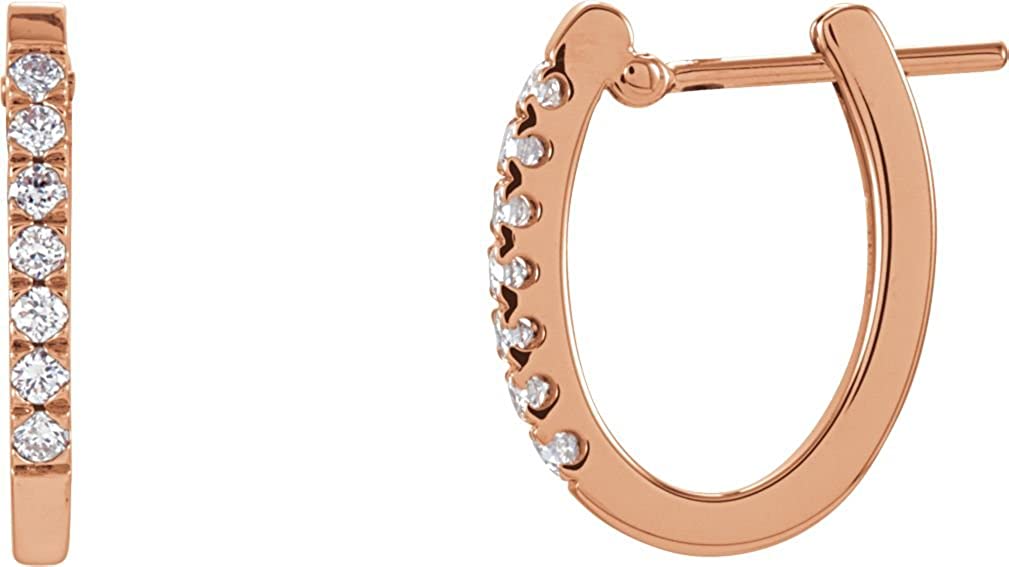 - Hand-Placed Diamonds Link Framed with Hoop Earrings are Hinged; Crafted in Polished 14K Rose Gold