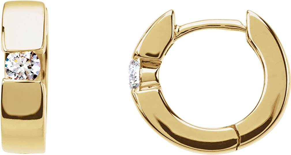 - Hoop Earrings with Two Hand-Set Diamond on Center with Latched Back; Earrings are Crafted in Polished 14K Yellow Gold