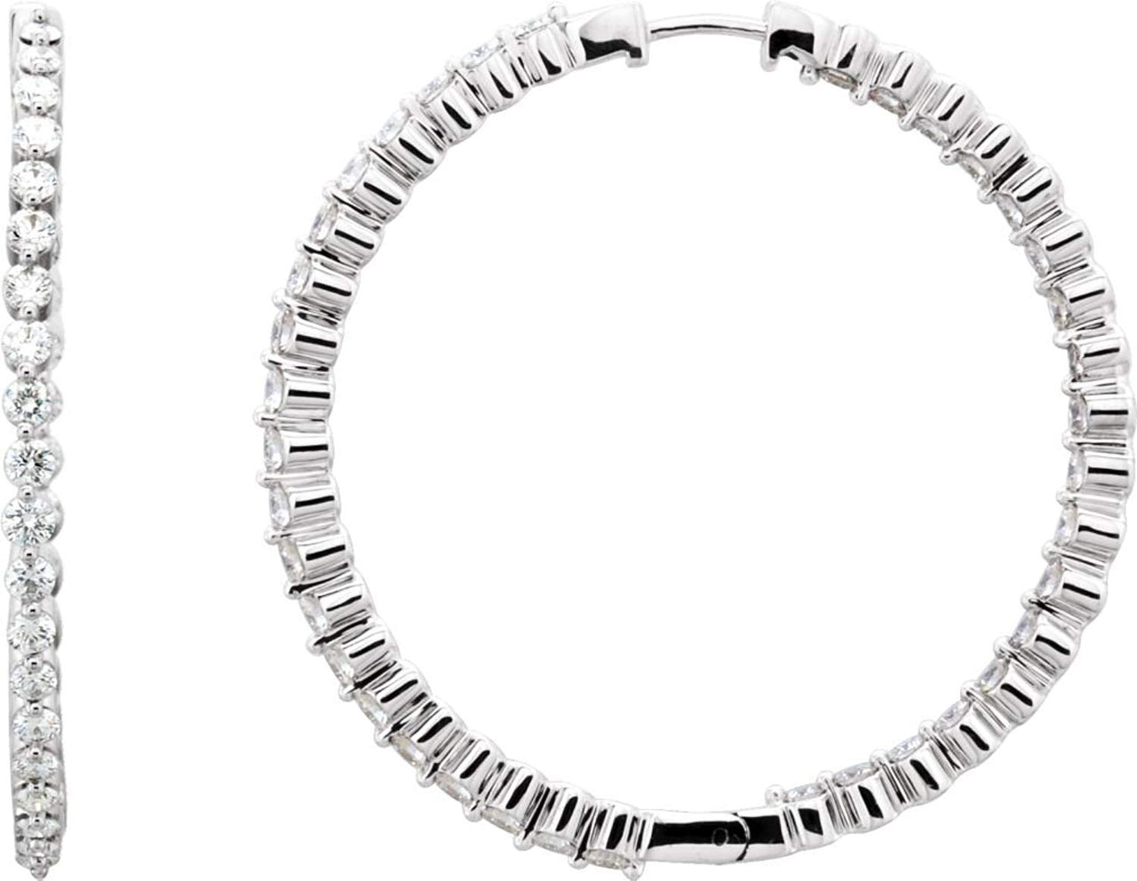 Diamond Inside-Outside Hoop Earrings, 14K White Gold (Color H+, Clarity I1 )