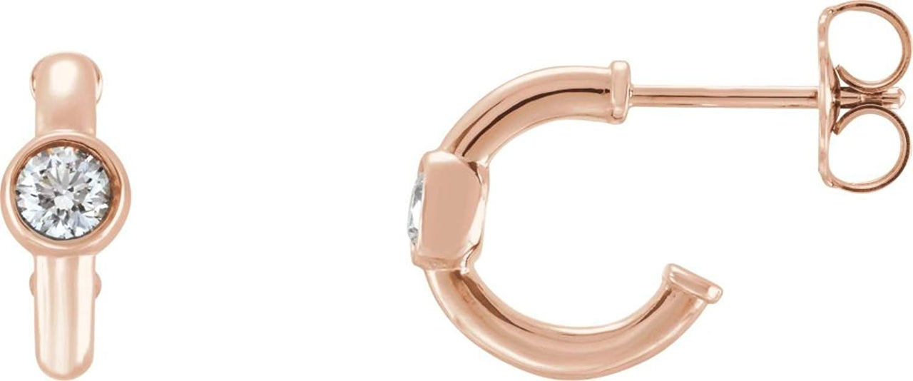 - Round Genuine Diamond Secured by Bezel Setting on Center of J Profile with Friction Back; Earrings are Crafted in Polished 14k Rose Gold