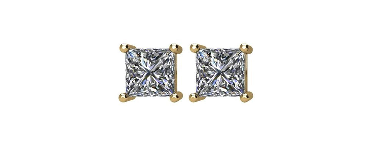 - Princess-Cut Diamond with Notched, Threaded Post; Earrings are Crafted in Polished 14k Yellow Gold