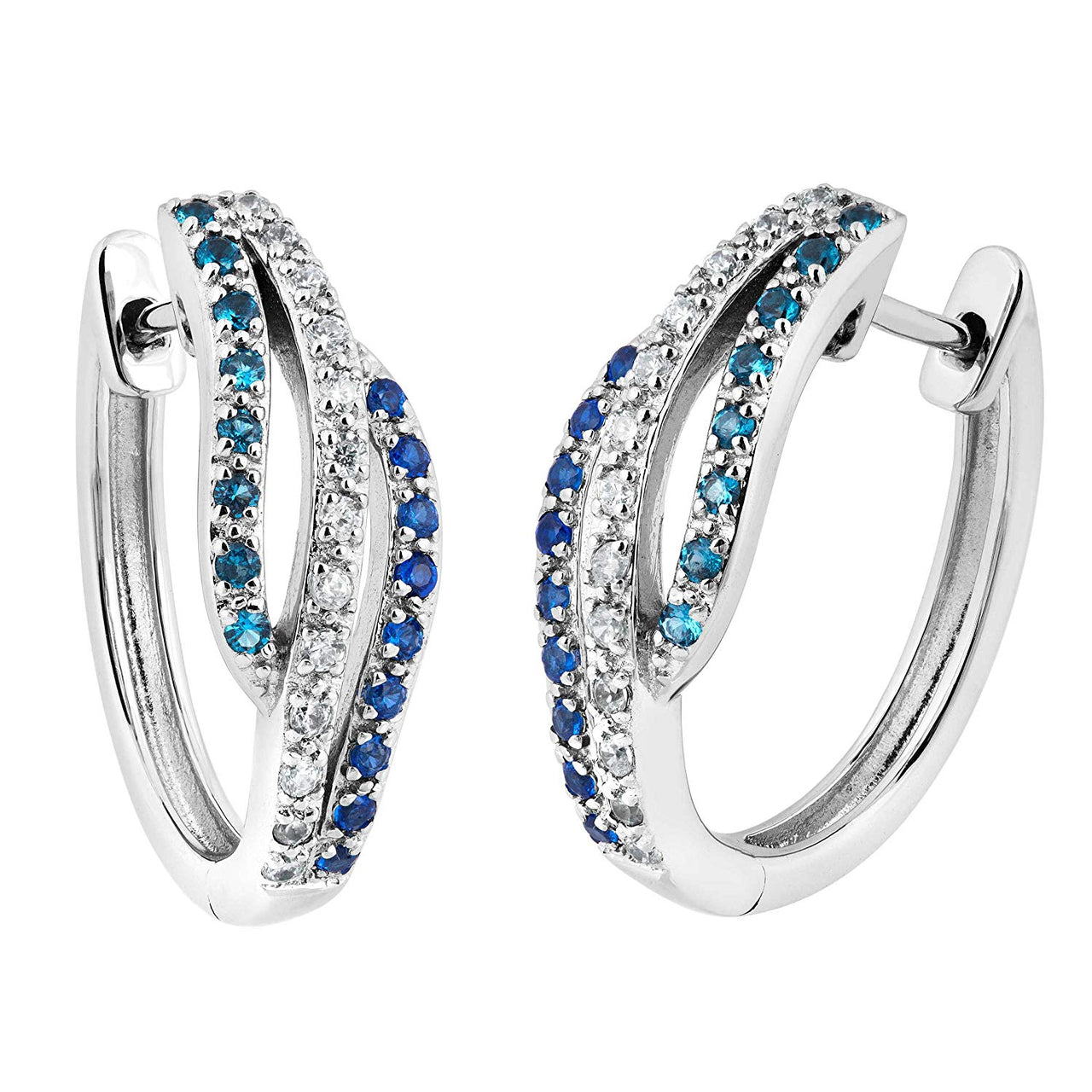 White and Blue CZ Earrings, Rhodium Plated Sterling Silver