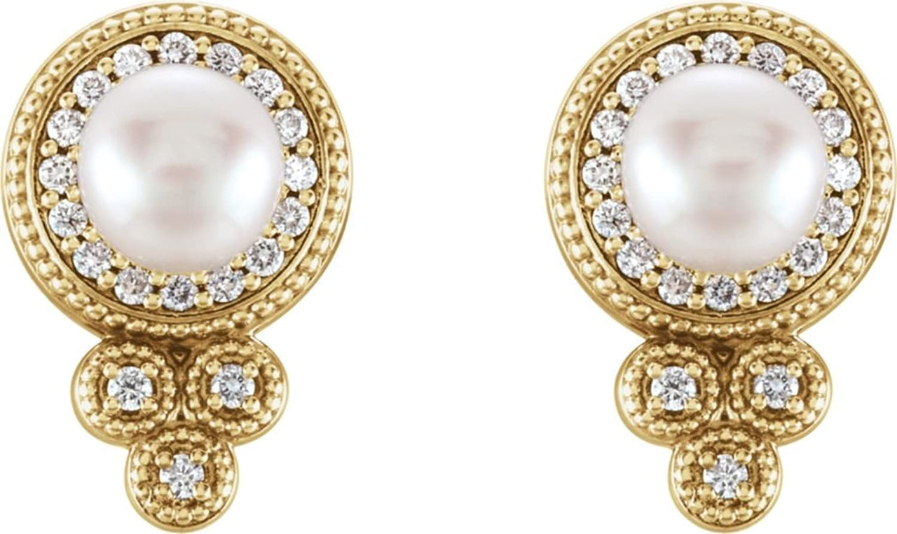 White Freshwater Cultured Pearl and Diamond Earrings, 14k Yellow Gold (5-5.5MM) (0.2 Ctw, G-H Color, I1 Clarity) White Freshwater Cultured Pearl and Diamond Earrings, 14k Yellow Gold (5-5.5MM) (0.2 Ctw, G-H Color, I1 Clarity) White Freshwater Cultured Pearl and Diamond Earrings, 14k Yellow Gold (5-5.5MM) (0.2 Ctw, G-H Color, I1 Clarity) White Freshwater Cultured Pearl and Diamond Earrings, 14k Yellow Gold (5-5.5MM) (0.2 Ctw, G-H Color, I1 Clarity)