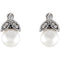- White Freshwater Cultured Pearl Accented with 10 Hand-Set Diamonds on Leaf Design with Friction Back; Earrings are Crafted in Polished Sterling Silver