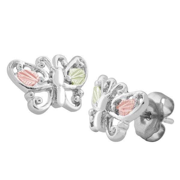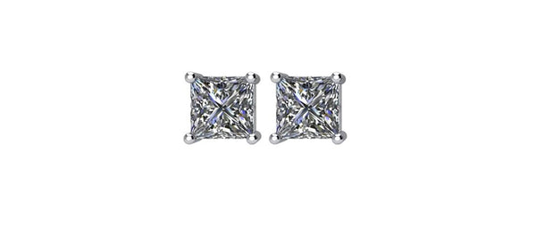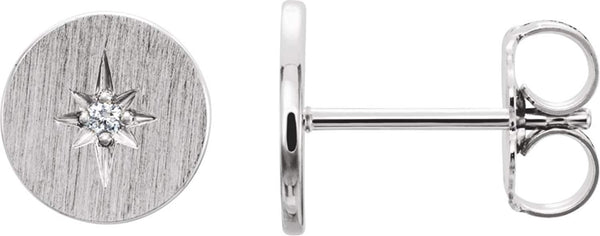 Diamond Star Earrings, Rhodium Plated Sterling Silver