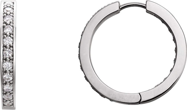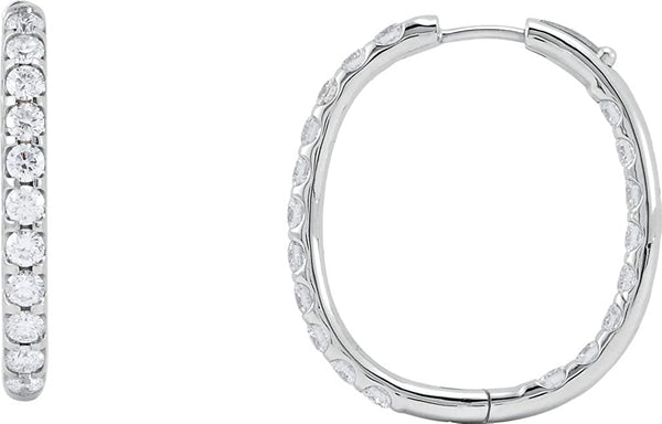 Diamond Inside-Outside Hoop Earrings, 14K White Gold (Color H+, Clarity I1 )