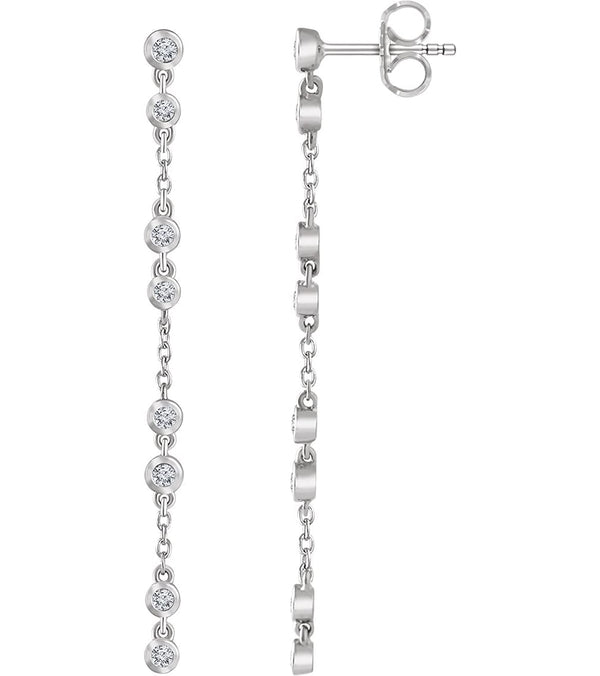 Diamond Loop Dangle Earrings, Rhodium Plated Sterling Silver