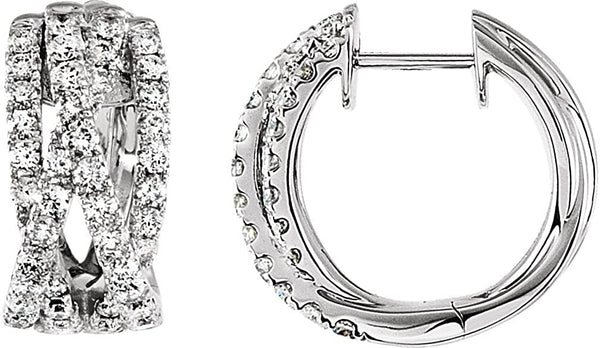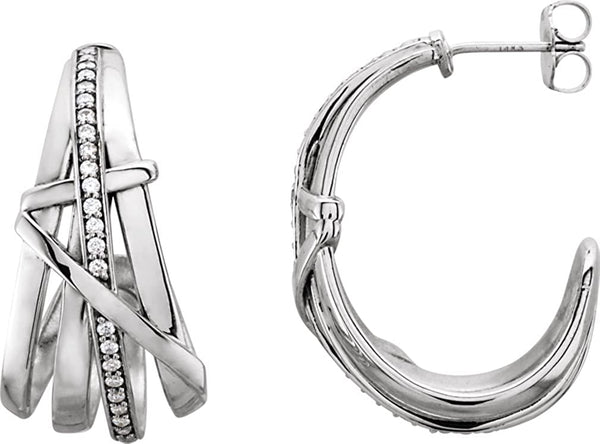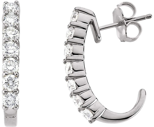 Diamond J-Hoop Earrings, 14k White Gold (1 1/2 Ctw, Color G-H, Clarity I1)