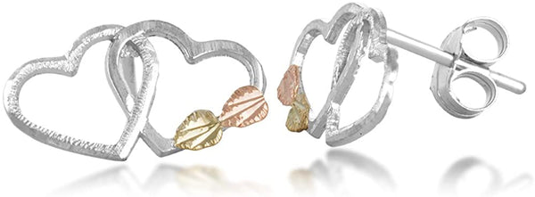 Pave CZ Heart Stud Earrings, Rhodium Plated Sterling Silver