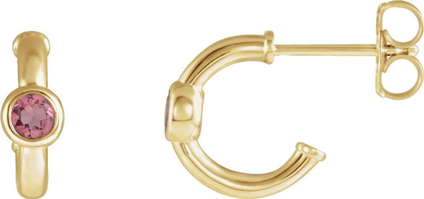 Pink Tourmaline J-Hoop Earrings, 14k Yellow Gold