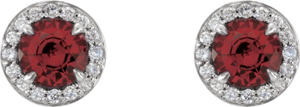 Mozambique Garnet Stud Earrings, Rhodium-Plated 14k White Gold