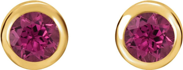 Mozambique Garnet Stud Earrings, 14k Yellow Gold