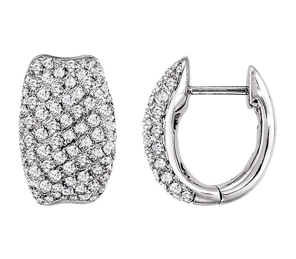 Pave Diamond Hoop Earrings, 14k White Gold (9/10 Ctw, Color G-I, Clarity I1)
