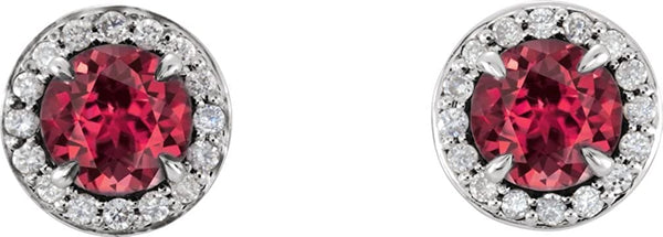 Round CZ Halo Rhodium Plated Sterling Silver Stud Earrings