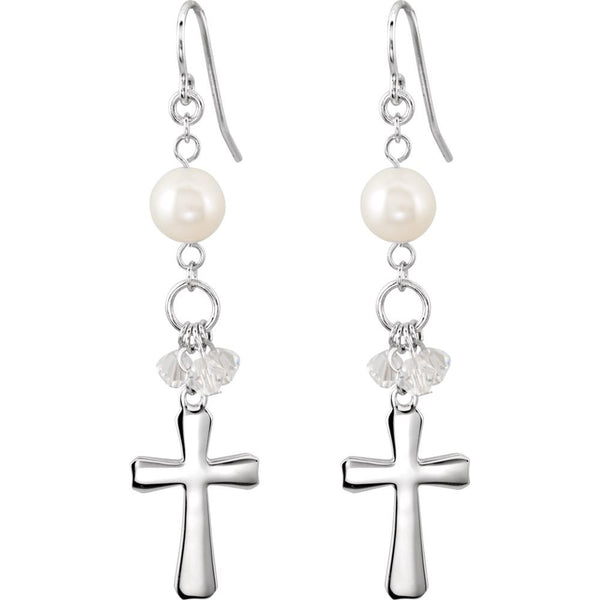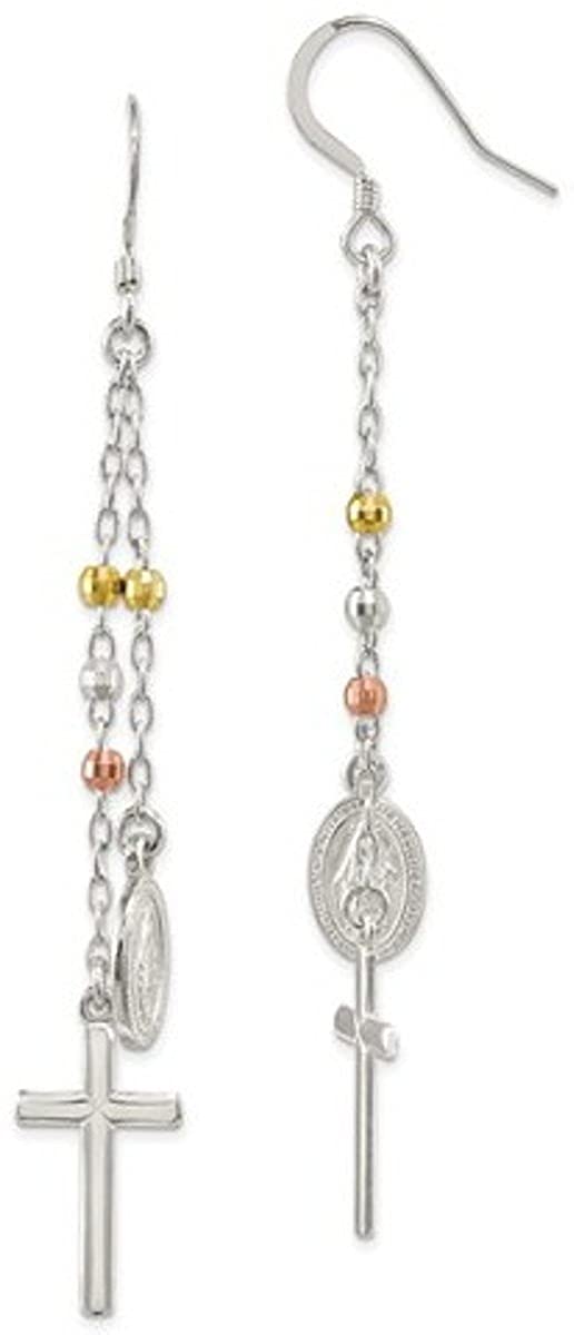 Sterling Silver Miraculous Medal and Cross Hook Earrings