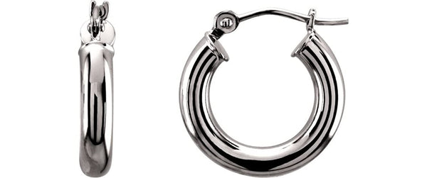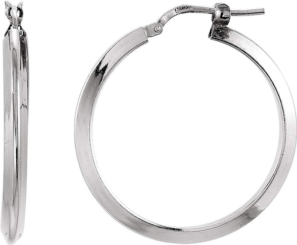 Rhodium-Plated 14k White Gold Hoop Earrings (14.25mm)