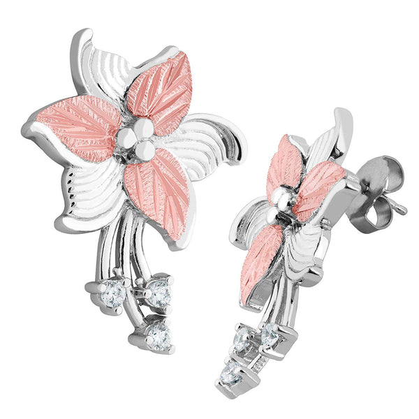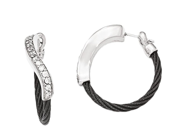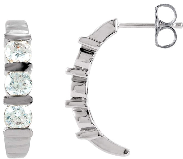 Rainbow CZ Rhodium-Plated Sterling Silver J Hoop Earrings