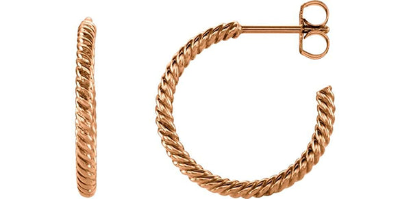 Rope Design Hoop Earrings, 14k Yellow Gold 17mm