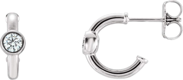 white Sapphire J-Hoop Earrings, 14k Yellow Gold