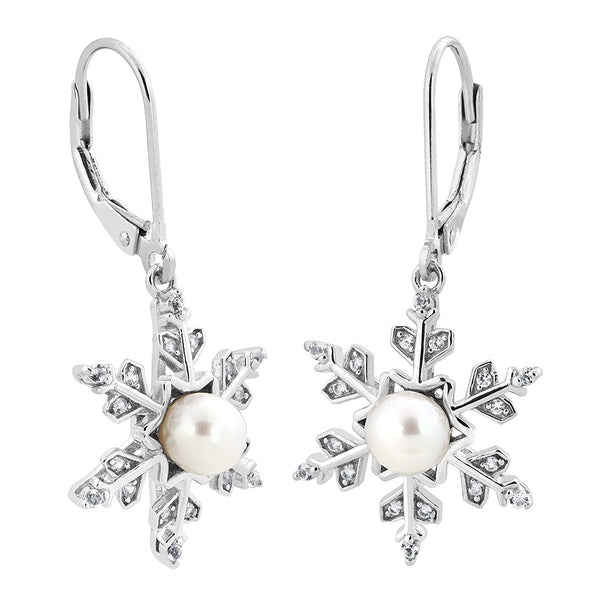 White and Blue CZ Earrings, Rhodium Plated Sterling Silver