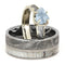 Aquamarine, Gibeon Meteorite, 10k White Gold Engagement Ring and Gibeon Meteorite, Deer Antler Titanium Band, Couples Wedding Set
