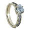 The wedding band is a circle; the circle is a symbol of infinite love.Out of this WorldGibeon Meteorite was discovered by the Nama people. This meteorite fell in prehistoric times in Namibia, Africa. The meteorite created a debris field 1.71 miles long by 62 miles wide. This unique wedding ring set shows off the lovely pattern of genuine gibeon meteorite. The masculine wedding band complements the meteorite with naturally shed deer antler while the elegant aquamarine engagement ring sets the meteorite in wavy 10k white gold.