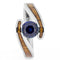 - Tension Set Blue Sapphire On-Center with Bypass Partial Koa Wood Inlay on a Hypoallergenic, Flat-Profile, Titanium Comfort-Fit Band
