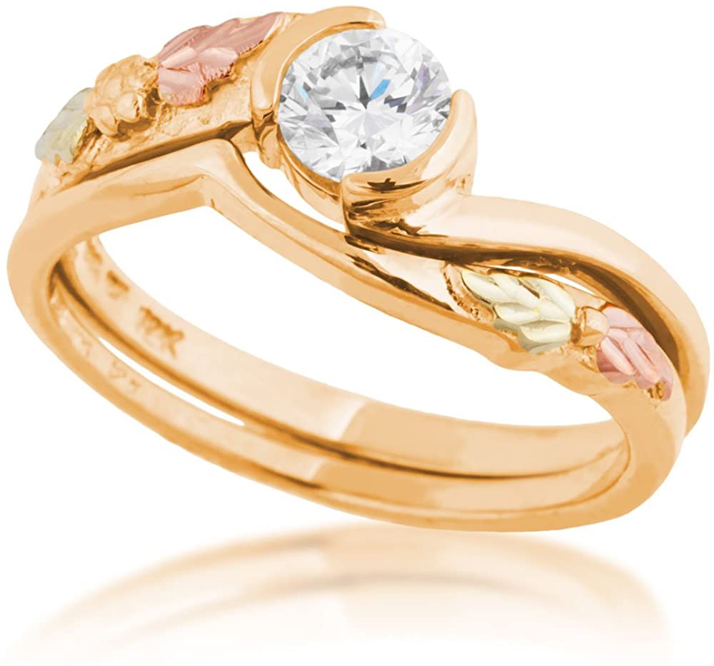 Diamond Bypass Engagement Ring, 10K Yellow Gold, 12k Green and Rose Gold Black Hills Gold Motif, Size 7