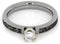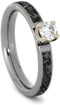 - Forever Brilliant Moissanite Solitaire Set in a 14k White Gold 4-Prong Setting Featured on a Titanium Band with Mimetic Meteorite Inlays and 14k White Gold Pinstripe; Crafted in Hypoallergenic Titanium